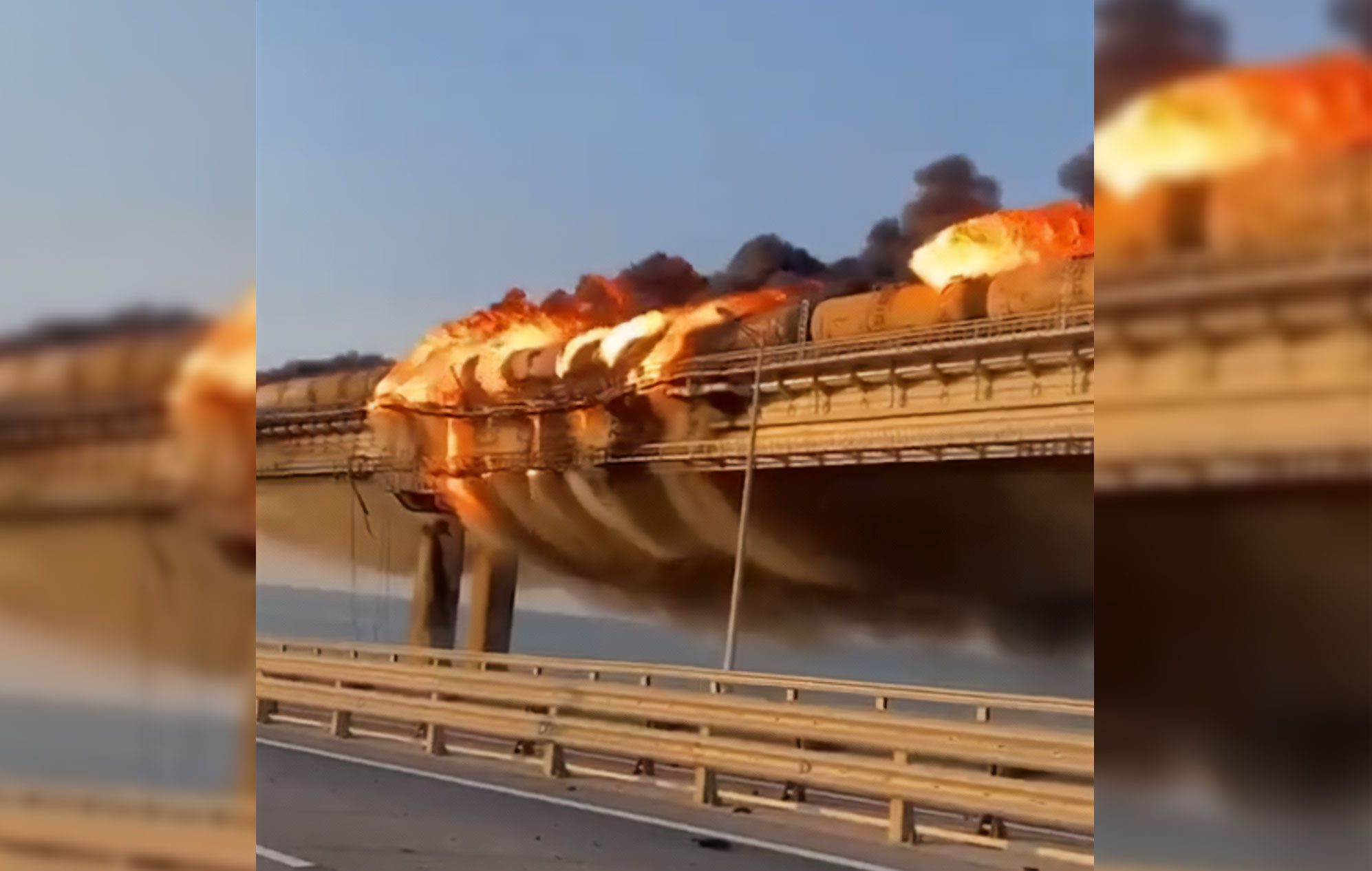 The train on the Kerch Bridge is still burning. The train bridge won’t be operational. That case is closed forever. #Ukraine #Crimea #Kerch pic.twitter.com/sZaiMgPfzB