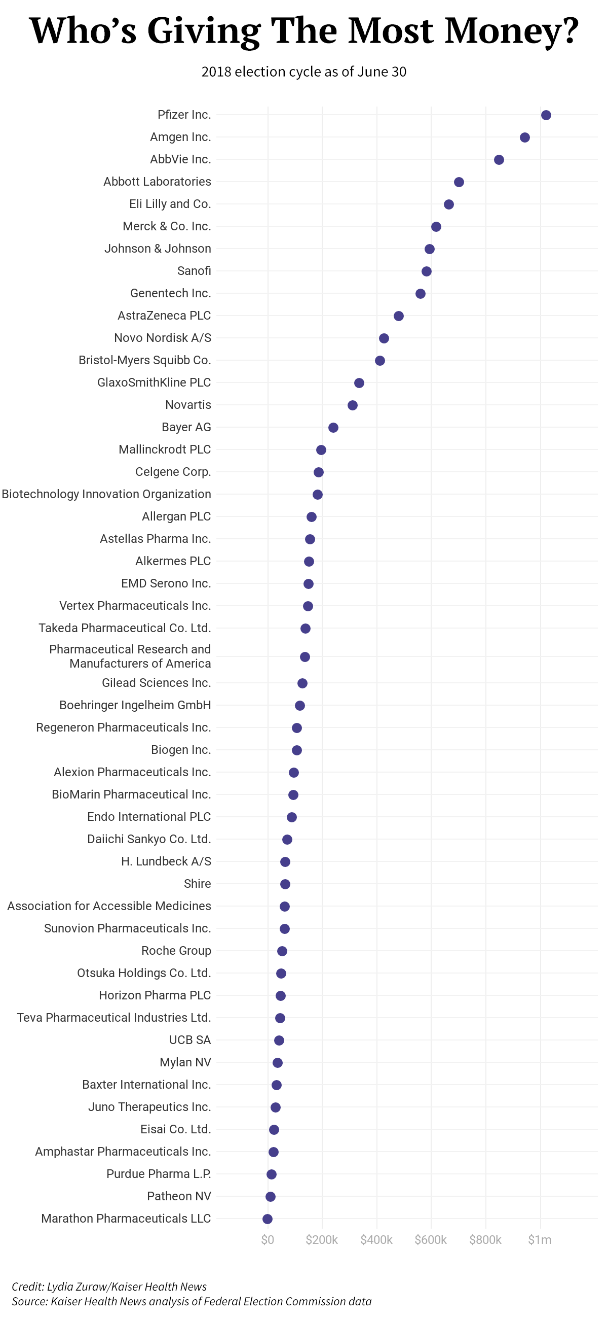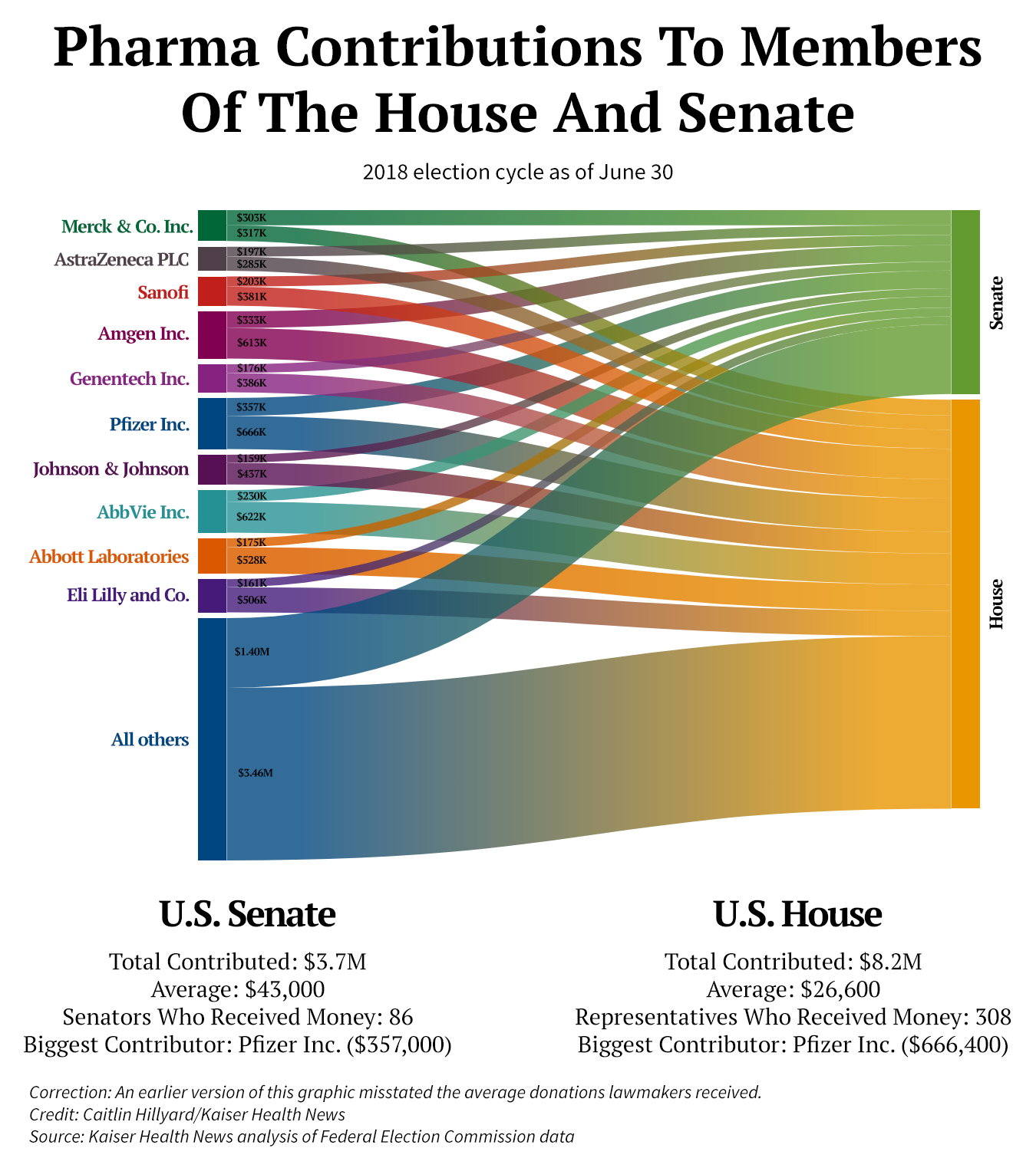 I contributi delle case farmaceutiche alla campagna elettorale hanno raggiunto livelli record negli ultimi anni, dato che i prezzi dei farmaci sono diventati una questione politica calda. Al 30 giugno, 52 comitati di raccolta fondi finanziati da aziende farmaceutiche e dalle loro organizzazioni commerciali hanno dato circa 12 milioni di dollari ai membri del Congresso per questo ciclo elettorale
