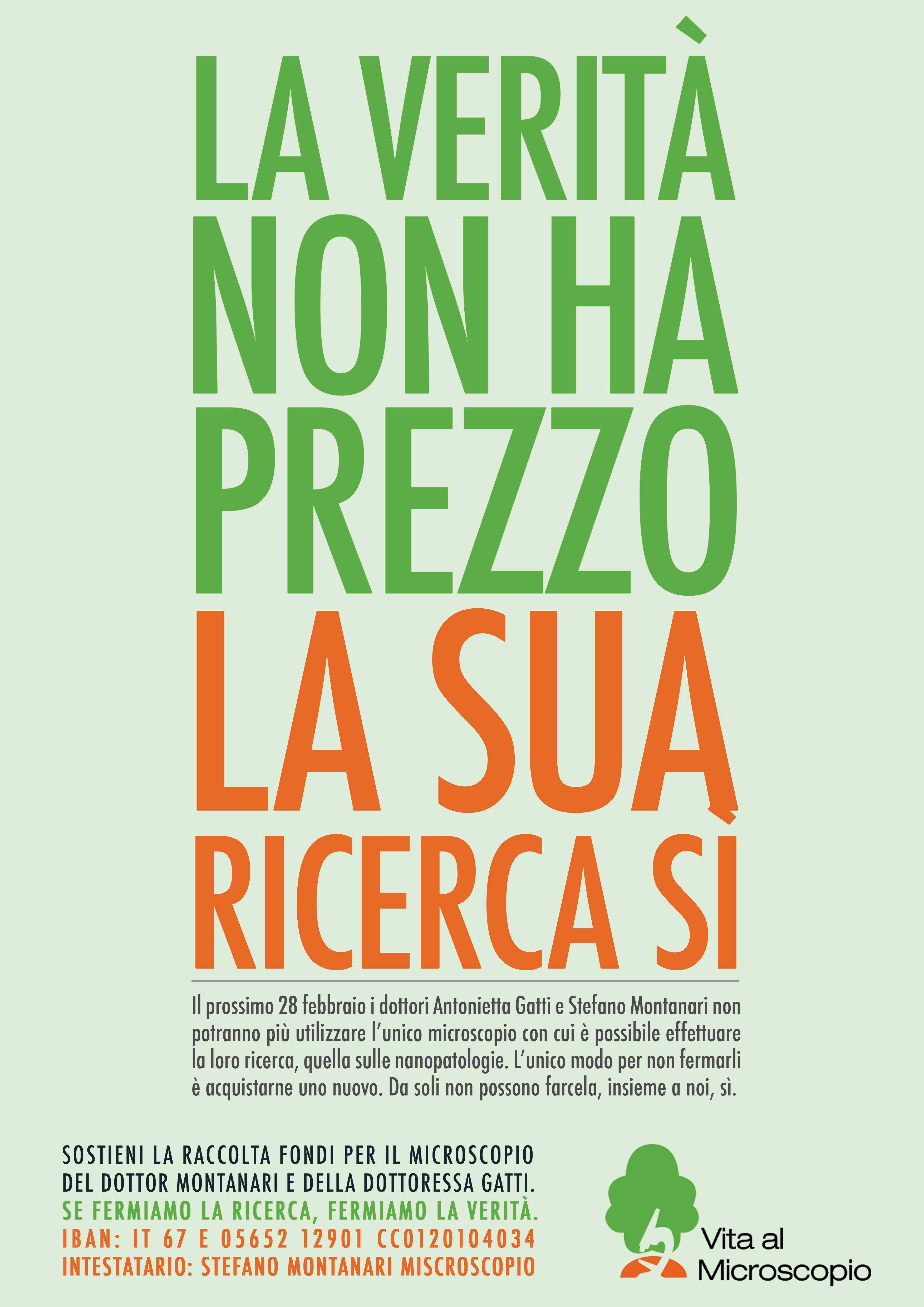 Rimandando al video, al materiale informativo e alla locandina della campagna per il microscopio, facciamo nostra la frase portante scelta dagli amici di Vita al Microscopio: “La Verità non ha prezzo, la sua ricerca sì”.